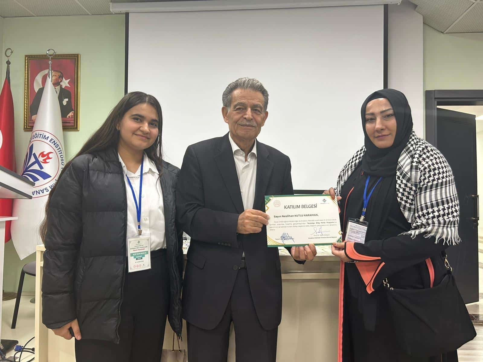 Panele İlimizi temsilen katılan Gerze Şehit Nurullah Saraç Anadolu Lisesi 11. Sınıf Öğrencimiz Elifnur MIZRAK; "Kutadgu Bilig'de Devlet Yönetimindeki Kut ve Töre Anlayışı" adlı panel metnini başarıyla sunarak büyük beğeni topladı. Panel sonunda öğrenciler, koordinatör öğretmenler ve İl Koordinatörümüz belgelerini, 2012 yılında gönüllü bir okuma faaliyeti olarak ortaya çıkan Anadolu Mektebi'nin kurucusu Eski Tarım ve Orman Köyişleri Bakanımız Prof. Dr. Sn Sami GÜÇLÜ'nün elinden aldılar.